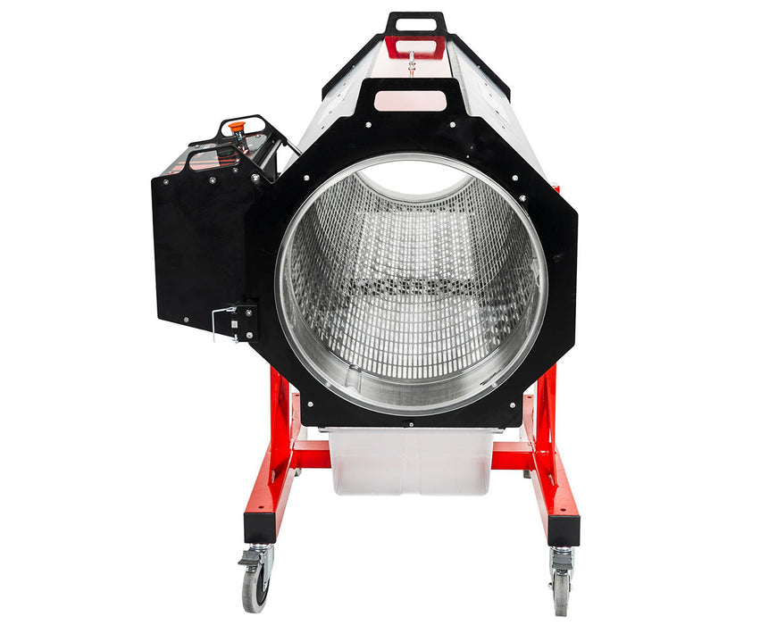 Trim 108 lbs/hr dry with soft tumble power, speed control, timer dial, and upgrade options for serious post-harvest efficiency.