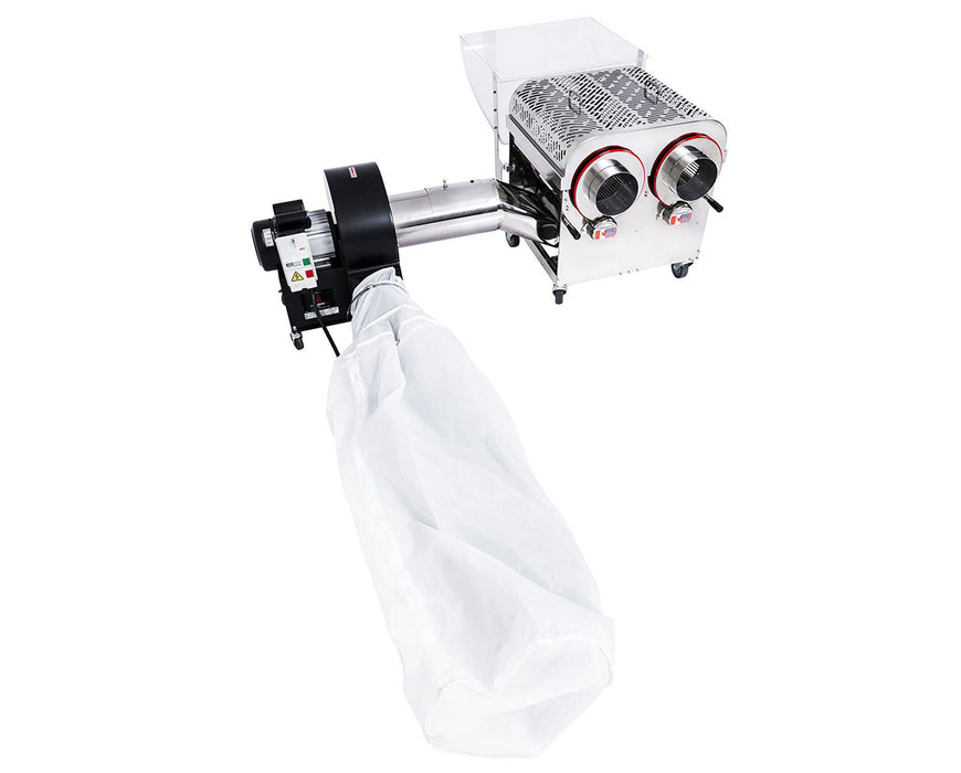 Equipped with a dual-purpose hybrid tumbler, the Gladiator SS trims both wet and dry material effortlessly, giving you maximum versatility and throughput in one machine. It's also compatible with the Triple-Bag Kief Collection System for capturing high-purity trichomes, helping you maximize extract potential and overall harvest value. (Triple-Bag System sold separately.)