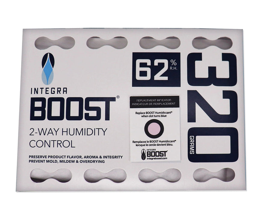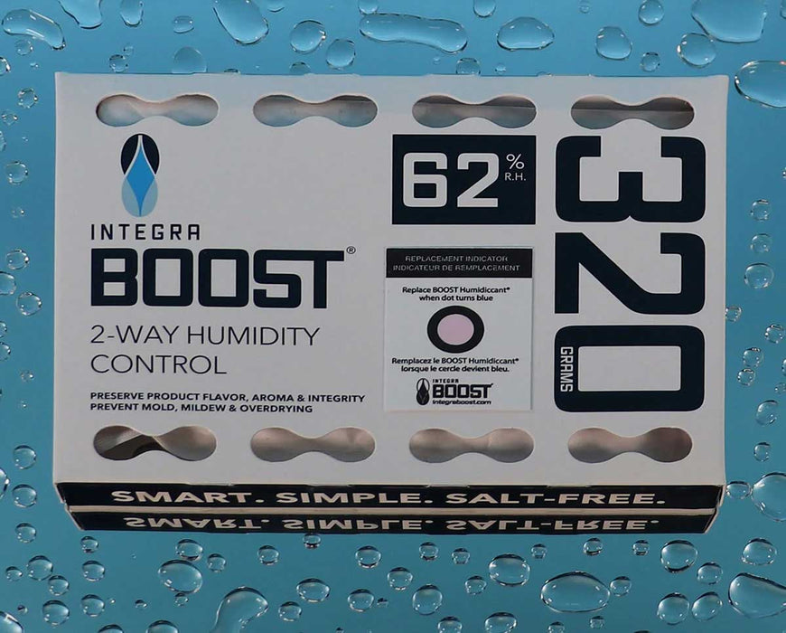 The Integra Boost 320g 2-Way Humidity Control pack is designed to maintain relative humidity at a precise 62%. This humidity control pack is perfect for ensuring your product stays fresh and potent. The pack’s patented technology can either release or absorb moisture, ensuring that your storage environment stays stable, whether you’re storing herbs, tobacco, or other moisture-sensitive products.