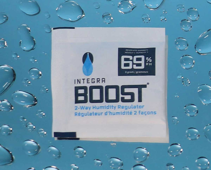 Elevate your moisture control game with Integra 8g RH 69% RETAIL packs. Our advanced technology actively regulates humidity in an enclosed space, maintaining a consistent 69% relative humidity level.