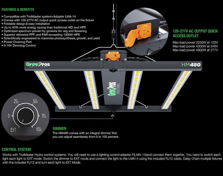 Cover up to a 4x4 flower space with 480W of full-spectrum LED power designed to slash energy bills, boost yields, and streamline your entire grow.