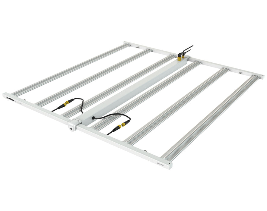 The Ultra800 LED Grow Light is built for vertical cultivation systems where space efficiency and airflow are critical. Drawing 800W with a PPF of 2080 µmol/s and an efficacy of 2.6 µmol/J, this full-spectrum grow light, including Far Red, drives healthy plant growth from seedling through flowering. Its slim, flat design maximizes usable vertical space, making it a top choice for multi-tier grow rooms and stacked hydroponic setups.