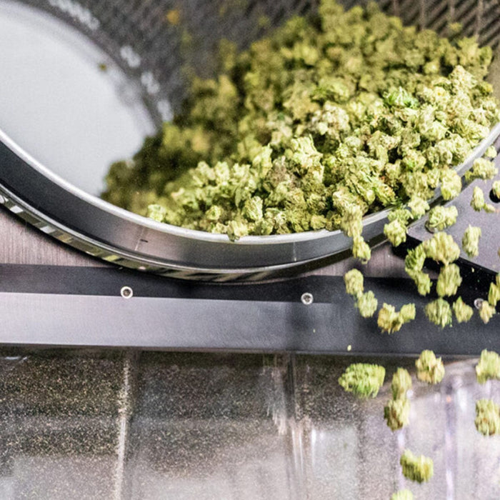 Minimal trichome loss: the slow, gentle tumble means the flower is exposed to new cutting surfaces naturally, resulting in minimal trichome loss