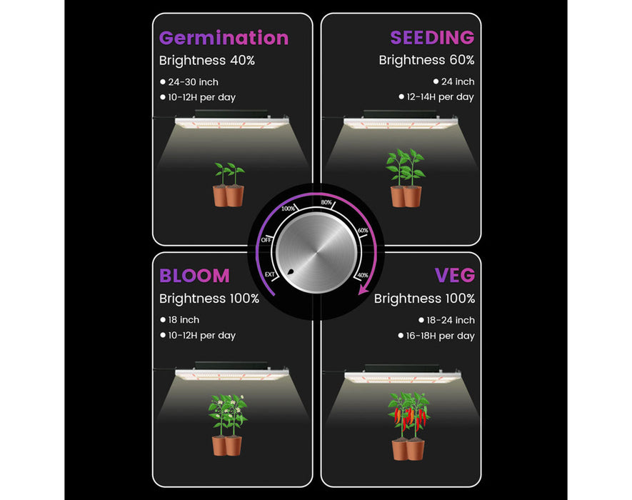 Full Spectrum: Optimal PAR (400-700nm) with balanced red and blue light; includes green light for photosynthesis.