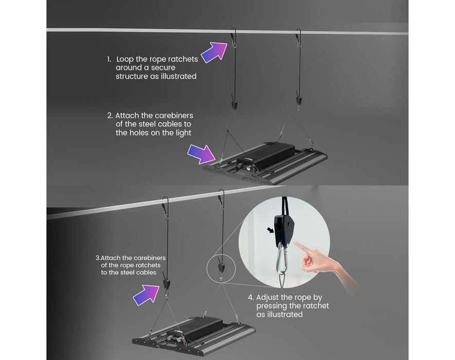 High Energy Efficiency: PPF of 420-1400 µmol/s; PPFD up to 2338 µmol/m²/s (150-500W), 30% more efficient than similar lights.