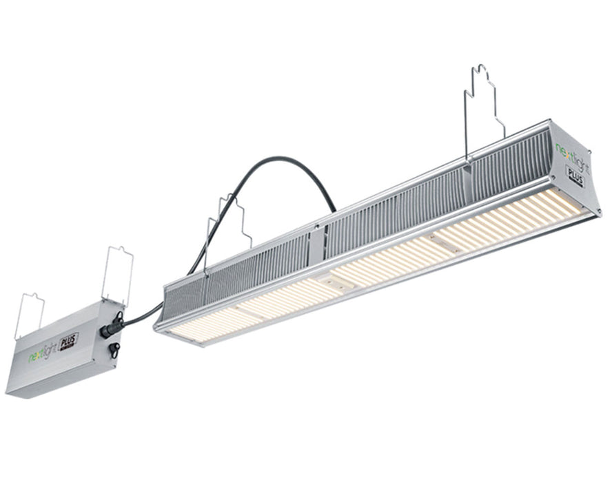 The NextLight Plus Pro is a high-efficiency, bright white LED grow light designed for supplemental greenhouse lighting and various indoor grow applications. With a slim, low-profile design, it minimizes unwanted shadows in greenhouse setups while delivering a powerful, full-spectrum output. As a direct replacement for a 600W HPS, this 320W fixture provides vigorous plant growth year-round at a lower operating cost, eliminating the need for bulb changes and constant maintenance.