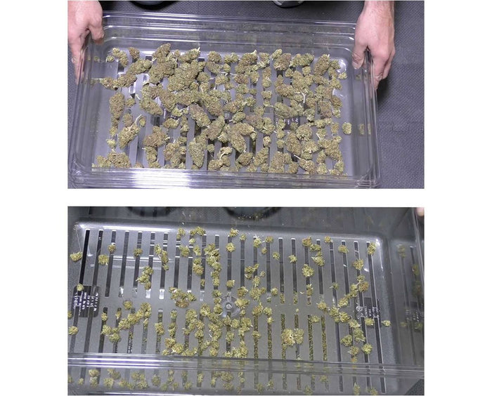 Speed up touch-up and QC by gently separating popcorn and trim from premium buds with this tiered shaker system.