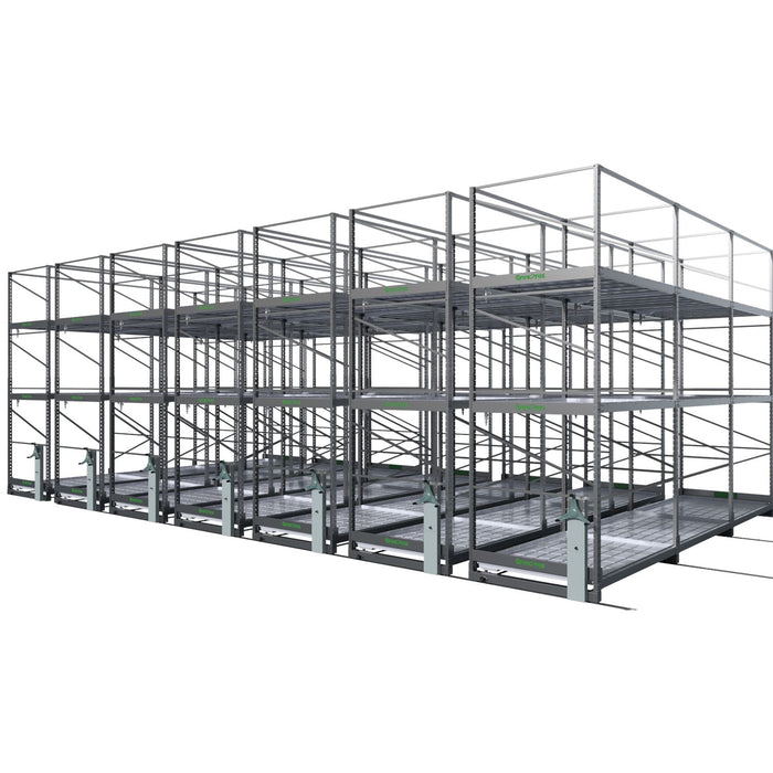 • Maximized Space Utilization: By stacking plants vertically, growers exploit every inch of available space, ensuring no area is wasted. Mobile racks further enhance this by eliminating static aisles, thus increasing the canopy grow space and potential revenue.