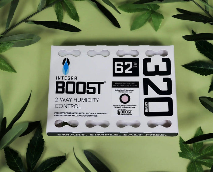 The Integra Boost 320g 2-Way Humidity Control pack is designed to maintain relative humidity at a precise 62%. This humidity control pack is perfect for ensuring your product stays fresh and potent. The pack’s patented technology can either release or absorb moisture, ensuring that your storage environment stays stable, whether you’re storing herbs, tobacco, or other moisture-sensitive products.