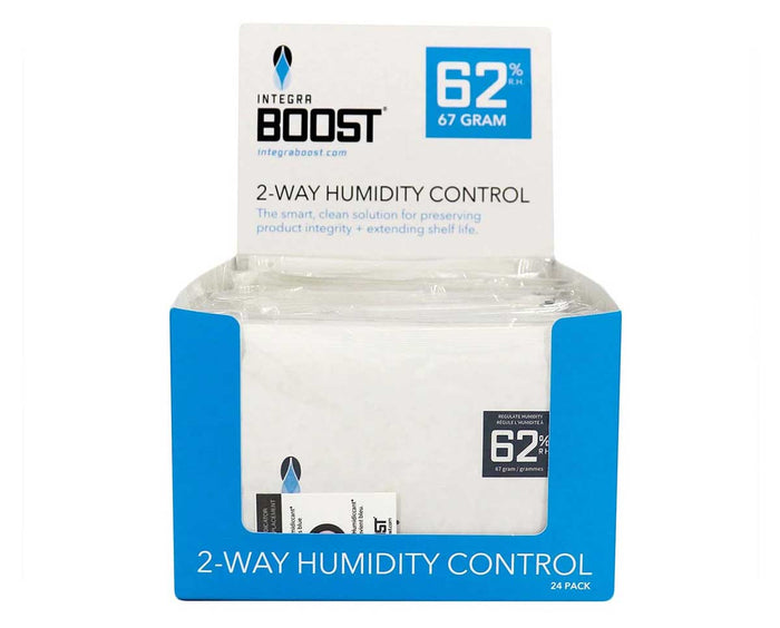 Maximize moisture control in enclosed areas with our 67g Integra Boost humidity control packs. Our patented technology regulates humidity levels to a precise 62%, using a two-way process of moisture release and absorption. Keep your environment contained and perfectly balanced with our reliable and effective humidity control solution.
