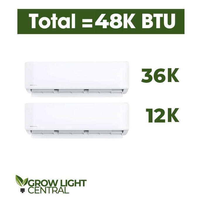 The MRCOOL DIY Multi-Zone 48,000 BTU Mini Split gives you serious climate control for large homes or open-plan areas—without paying a pro to install it. This 2-zone setup includes a 12K BTU air handler (up to 550 sq ft) and a 36K BTU air handler (up to 1,650 sq ft), powered by a high-capacity 48K BTU condenser.