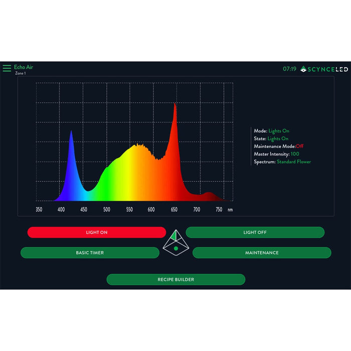 The Echo Display can handle up to 300 wired Scynce LED fixtures and 200 Thread Mesh wireless Scynce LED fixtures at the same time. You can divide these fixtures into 20 different lighting zones, each of which can be controlled separately.